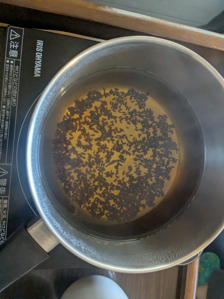 お鍋で乾煎りして、お水を入れて沸騰させるだけ。