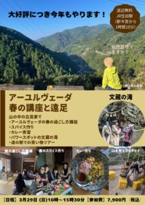 和歌山県かつらぎ町でのアーユルヴェーダ1day講座と春の遠足のご案内です。